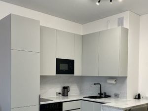 Квартира с современным евроремонтом, полностью меблирована и готова к проживанию. В комнате и на кухне есть вся необходимая мебель. В кухне установлена посудомоечная машина и холодильник, в жилой зоне - телевизор. В ванной комнате вас ждёт комфортная ванна и стиральная машина. Высокоскоростной интернет обеспечит вам удобную работу и досуг.