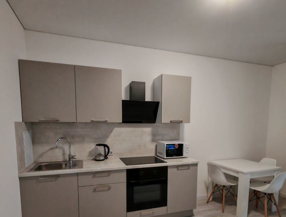 В квартире есть вся необходимая мебель и техника для вашего удобства: холодильник, варочная панель, духовой шкаф, микроволновая печь, телевизор, утюг и стиральная машина. Просторная кухня с мебелью станет отличным местом для кулинарных экспериментов, а в совмещенном санузле вы найдете ванну для расслабления после долгого дня.