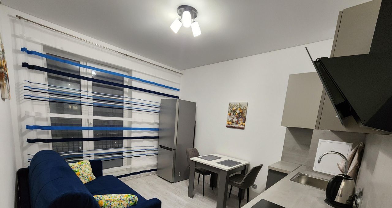 Сдается 1-комнатная квартира, новая, только после ремонта, в развитом районе, есть детский сад, школа, достраивается в шаговой доступности взрослая поликлиника. Рядом расположены Лента и Максидом. До станции метро "Дыбенко" идёт общественный транспорт с периодичностью каждые 5 минут (до метро ехать ориентировочно 7 минут). Вся мебель и техника новая. В спальне размещена двуспальная кровать. Дополнительные 2 спальных места есть на кухне (на раскладном мягком диване). В квартире есть вся необходимая техника: холодильник, индукционная плита, духовка, вытяжка, телевизор, стиральная машина, пылесос, утюг, чайник. Квартира предназначена для одного человека или семейной пары.