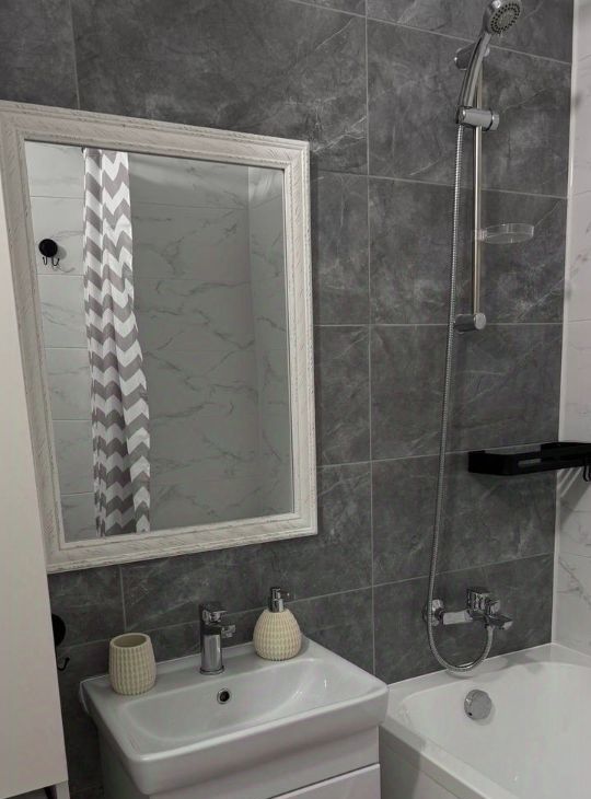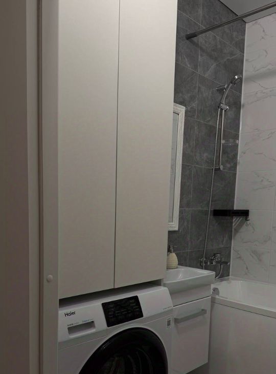 Техника: электрическая плита, духовой шкаф, вытяжка, холодильник, посудомоечная и стиральная машина, теплые полы в ванной, видеодомофон. Телевизор, микрволновая печь и другая техника предоставляется арендатору по запросу.