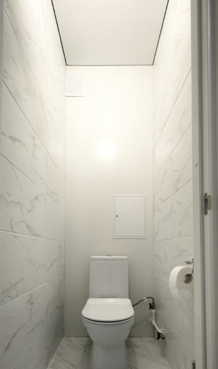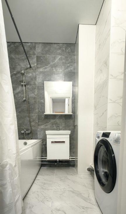Санузел раздельный, оформлен в современном стиле. В ванной (3.4 кв.м) тёплый пол, установлена стиральная машина.