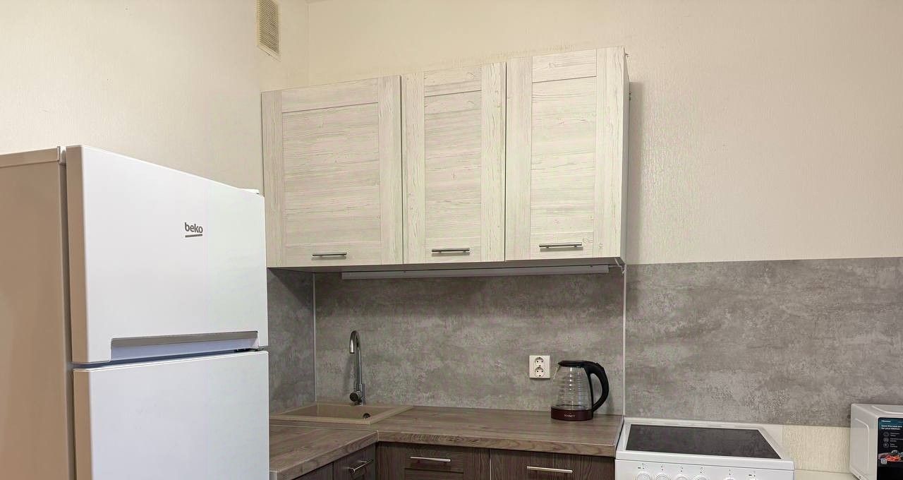 Квартира укомплектована всем необходимым, Есть необходимая техника (стиральная машина, холодильник, микроволновка, варочная панель, чайник, духовка) и мебель (двуспальная кровать, диван, шкафам). Квартира теплая. В 50 метрах от дома магазин Магнит, в 15 мин. ходьбы Лента, Лондон Молл, СК Газпром.