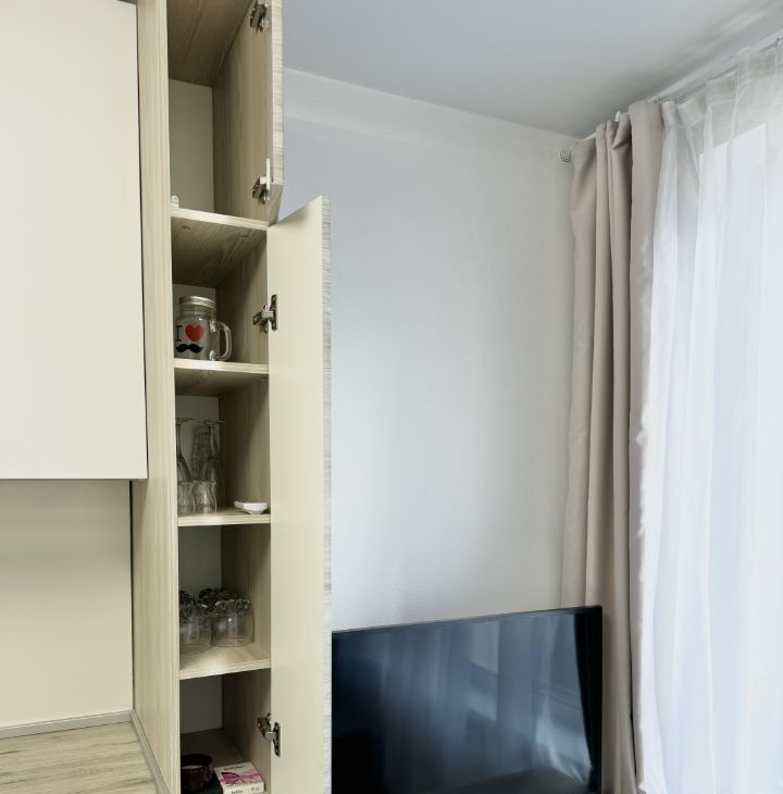 В квартире качественные, дорогие (широко известных брендов) и современные: мебель, встроенная кухня и техника (в т.ч. встроенный холодильник, полноценная посудомоечная машина на 60см, духовой шкаф с функцией СВЧ 2 в 1, электрическая варочная панель 4 конфорки, вытяжка, два ТВ, стиральная машина, все в точности как на представленных фото, +утюг/сушилка для белья/гладильная доска/посуда/столовые приборы, есть все необходимое для комфортного проживания, а чтобы ваш сон был крепким, мы установили шторы Блэкаут и двуспальную кровать размером 180*200 см.