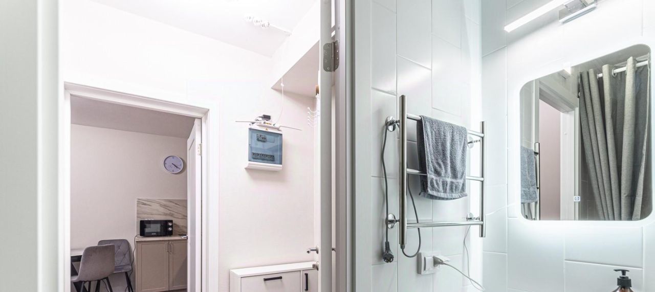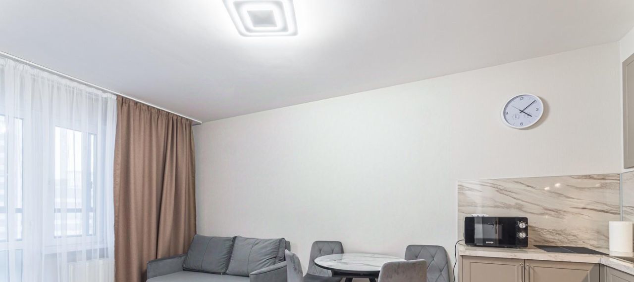 На кухне, в комнате и коридоре установлены яркие настраиваемые светодиодные люстры.