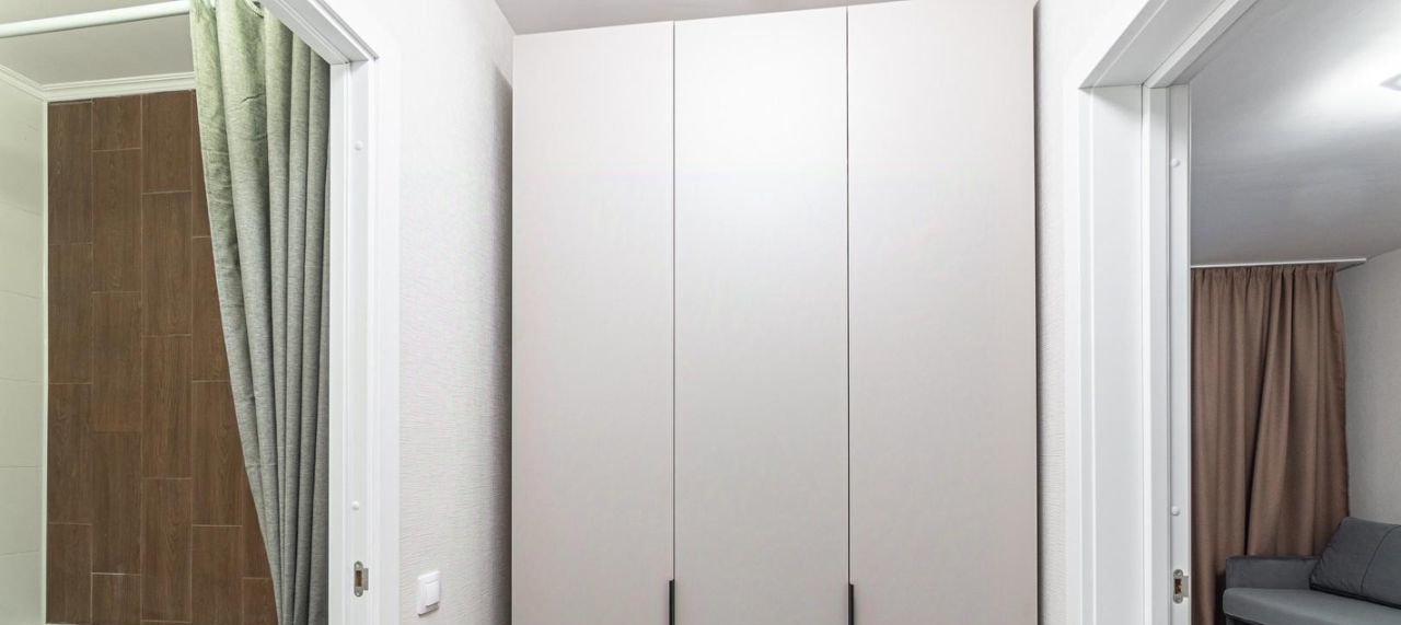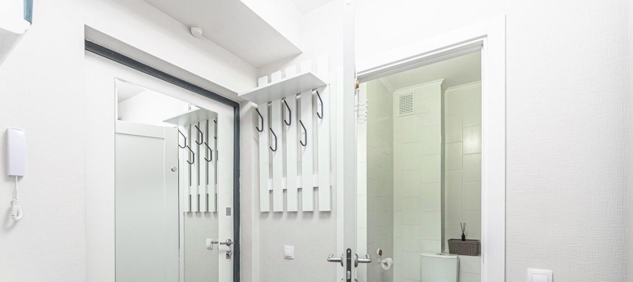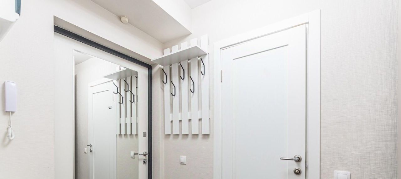 В коридоре установлена вешалка, зеркало во входной двери, обувница, а также большой шкаф.