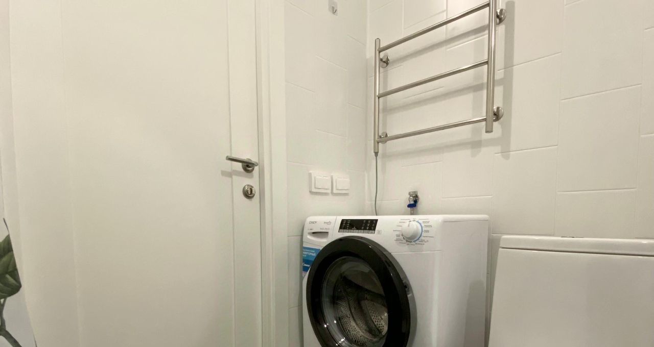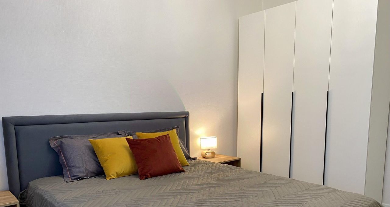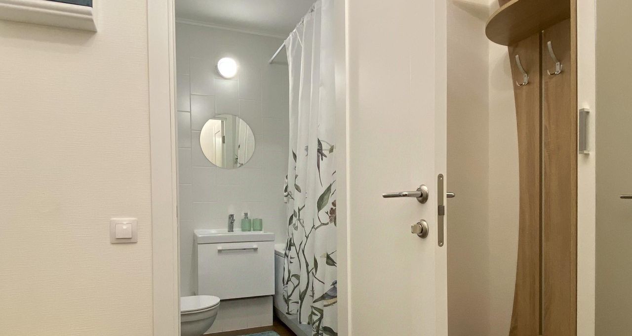 Комфортная спальня с большой двуспальной кроватью, вместительным шкафом и комодом для хранения вещей. Полностью оборудованная кухня с плитой, духовкой, микроволновой печью, электрическим чайником и всем необходимым для для приготовления пищи. Телевизор, утюг, гладильная доска и сушилка — всё, что нужно для вашего удобства.