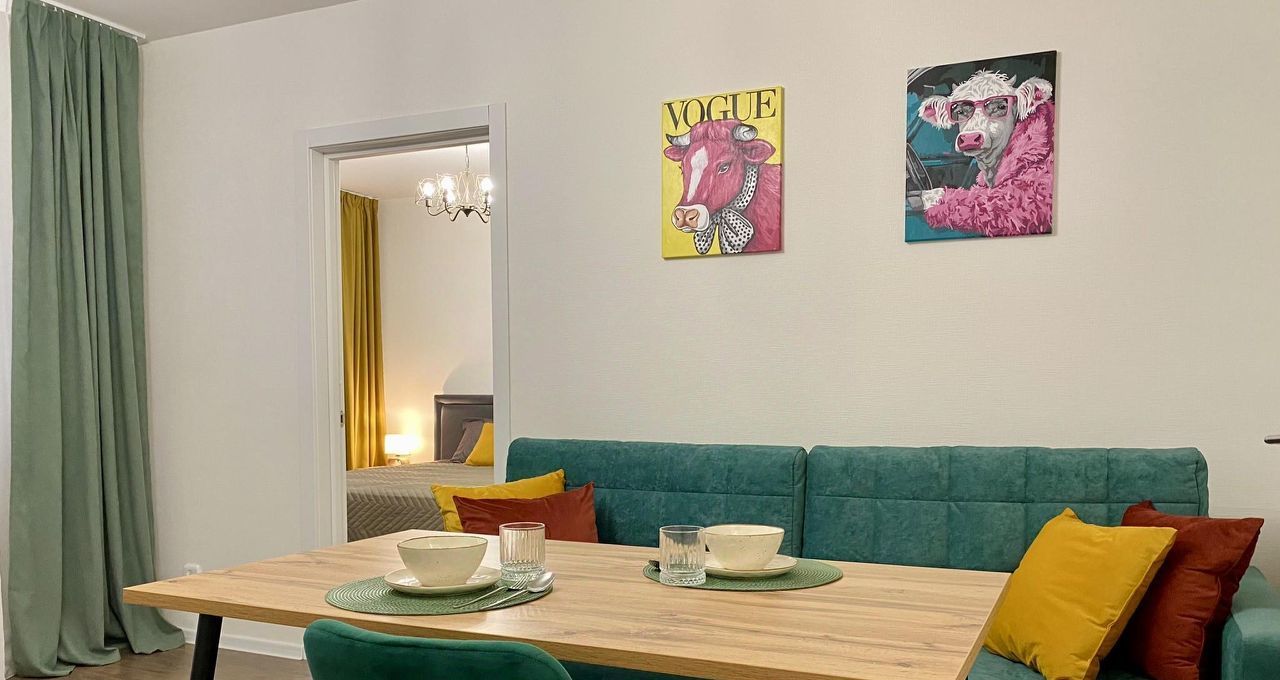 Квартира представляет собой просторное жилье комфорт-класса с рациональной планировкой, состоящее из кухни-гостиной с небольшой обеденной группой и диваном (при необходимости, раскладывается в дополнительное спальное место) с выходом на застекленную лоджию, изолированной спальни и совмещённого санузла.