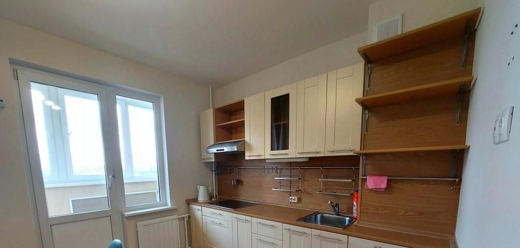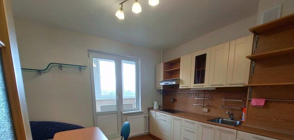 Просторная, 39 м кв, большая комната, вместительная кухня с выходом на застекленный балкон.