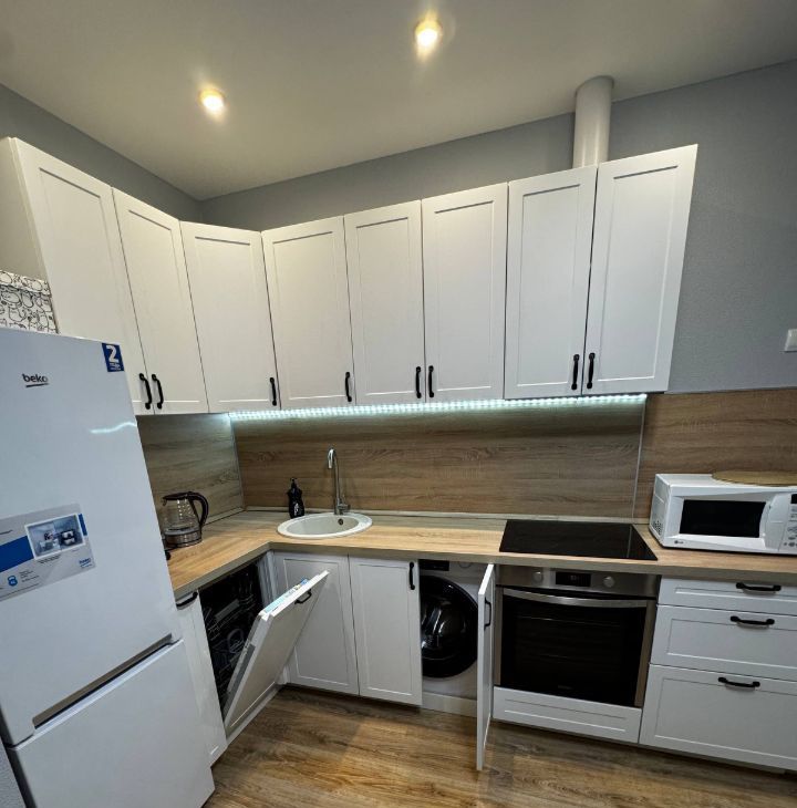 В квартире есть вся необходимая техника, в том числе посудомоечная машина.