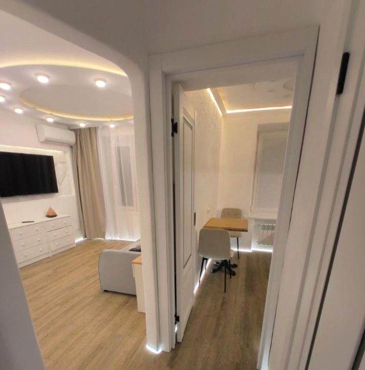 Квартира с дизайнерским ремонтом, полностью готова для комфортного проживания. На кухне и в комнате есть вся необходимая мебель. Из техники в вашем распоряжении: холодильник, посудомоечная машина, телевизор и стиральная машина. В ванной комнате установлена ванна, что позволит вам расслабиться после рабочего дня. В квартире проведён интернет.