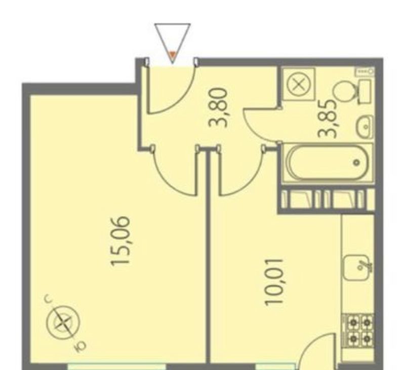 Комната 15.6 кв.м., кухня 10,01 кв.м. с выходом на лоджию. Санузел 3.85 кв.м, прихожая 3.8 кв.м., лоджия 6 кв.м.