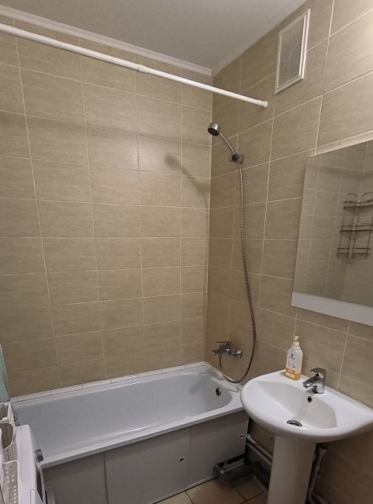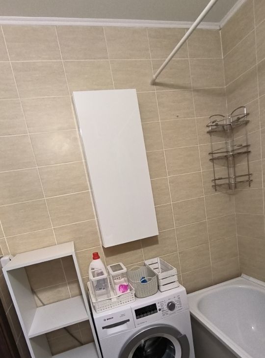В квартире выполнен косметический ремонт, что делает её светлой и уютной. В наличии вся необходимая мебель как в комнате, так и на кухне. Для вашего удобства есть холодильник, телевизор и стиральная машина. В квартире два отдельных санузла, в одном из которых установлена ванна. Лоджия добавляет дополнительное пространство для отдыха или хранения вещей.