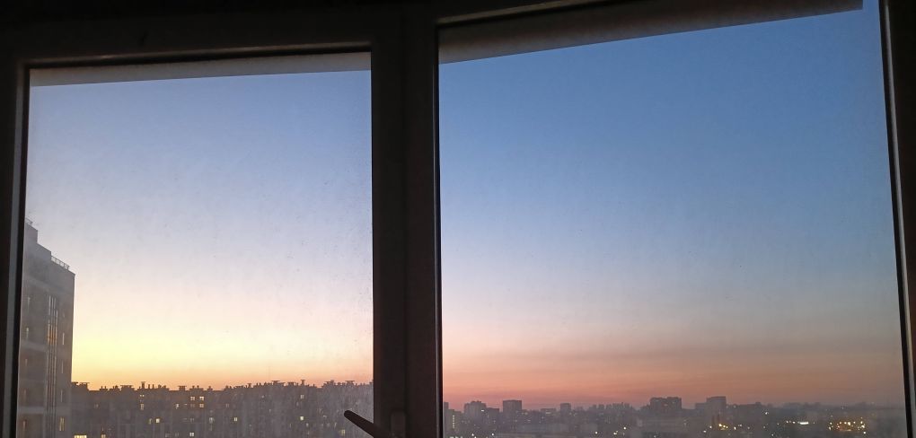 Окна на Кушелевскую дорогу. Из окна виден храм.