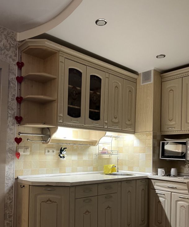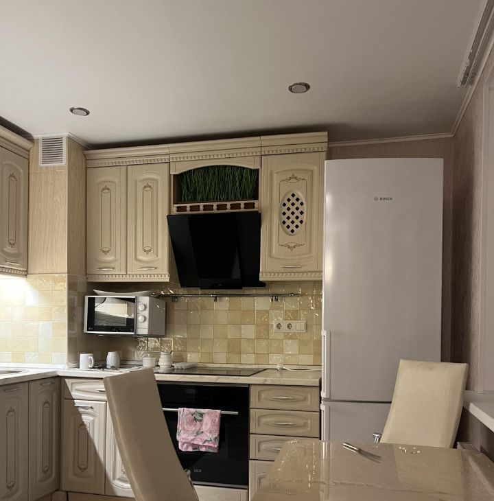 - Техника: стиральная машина, холодильник, варочная панель и духовка, микроволновка, электрочайник.