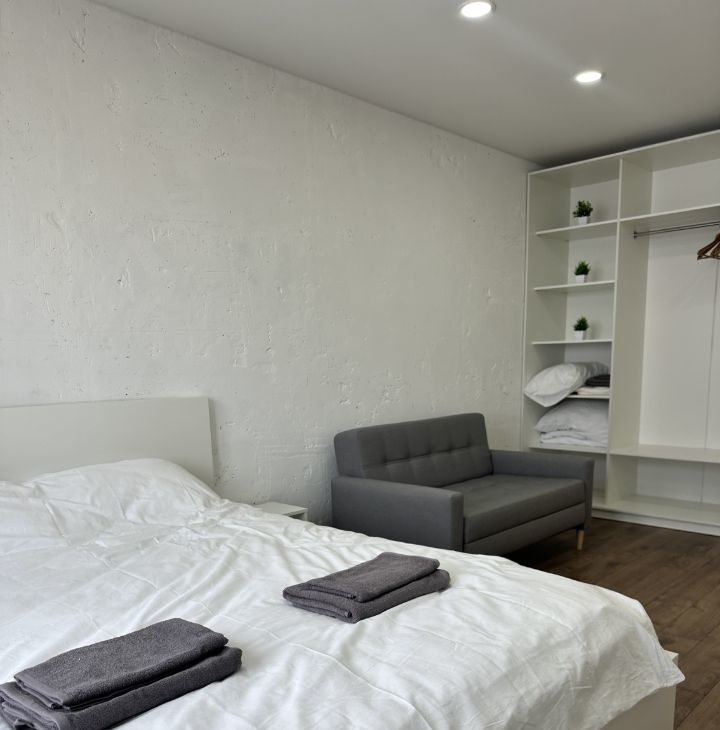 В квартире созданы все условия для комфортного проживания и имеется качественная современная техника: Духовой шкаф, варочная панель, Микроволновка, смарт ТВ, высокоскоростной интернет, стиральная машина, чайник, тостер, блендер, гладильная доска с утюгом. Всего в квартире 4 спальных места: большая двуспальная кровать с дорогим удобным матрасом, и раскладной полутороспальный диван.
