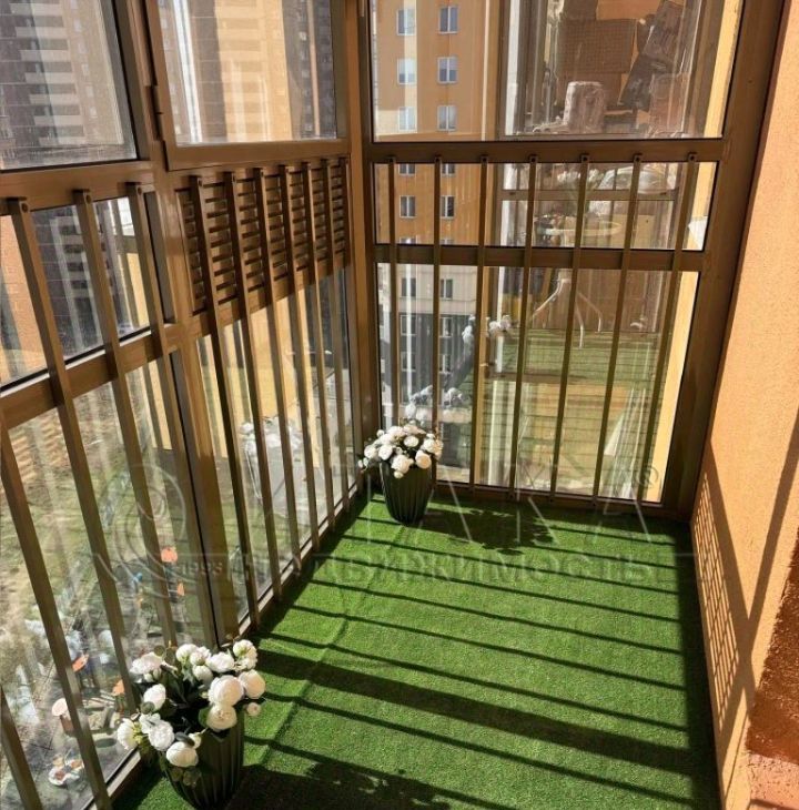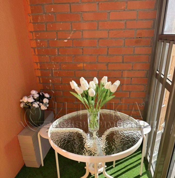 Застеклённая лоджия с оборудованной зоной отдыха. Есть домофон, вайфай.
