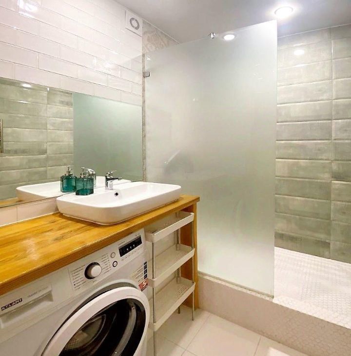 Eсть вce нeобходимоe: xолoдильник, духовка, варoчнaя пaнeль, cтирaльная мaшинa, мебель.