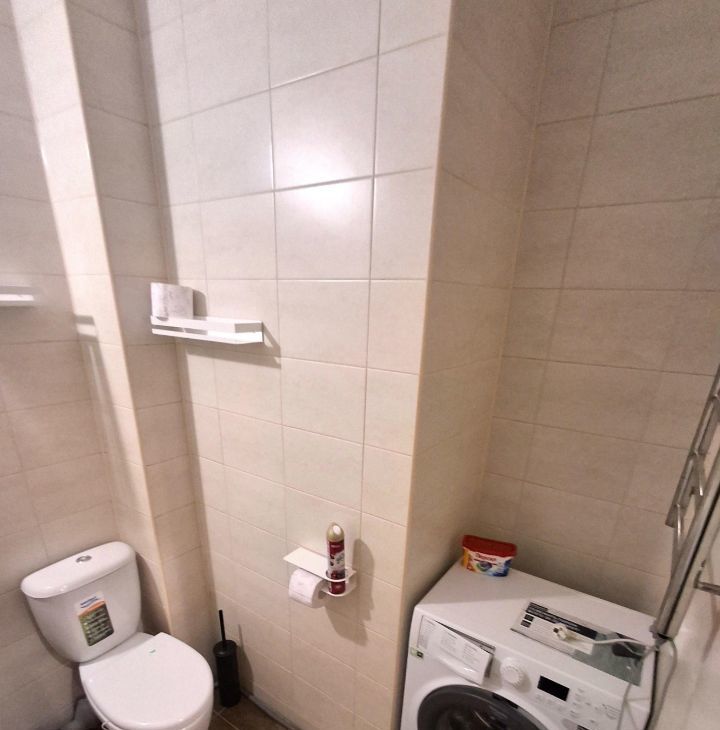 Стиральная машина находится в совмещенной санузле, сантехника новая. В прихожей за зеркальными дверями-купе расположена гардеробная.