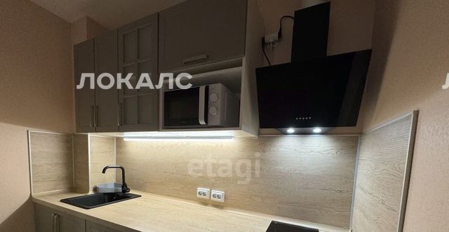 • Современно оборудованная кухня. В ней есть: холодильник, варочная панель, духовой шкаф. кухонный гарнитур, микроволновка, вытяжка.