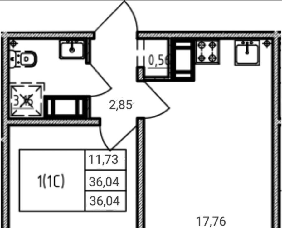 1-к кв. Санкт-Петербург дор. Муринская, 25к2 (36.0 м²)