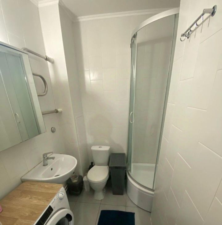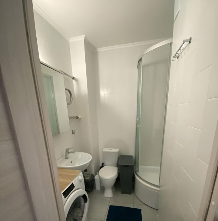 В квартире выполнен качественный евроремонт. В комнате и на кухне есть вся необходимая мебель, поэтому можно сразу заехать и жить. Кухня оснащена современной техникой: холодильником, телевизором и стиральной машиной. Санузел совмещен и оборудован душевой кабиной, что делает его удобным и функциональным.