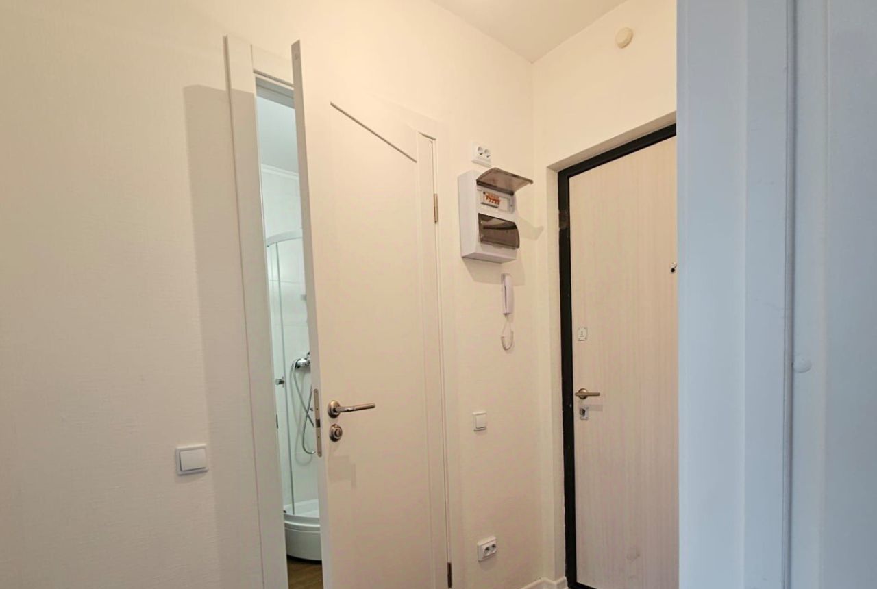Сдаётся уютная однокомнатная квартира в современном жилом комплексе на Муринской дороге, дом 31к3, в Санкт-Петербурге. Квартира площадью 30 кв. м расположена на 8 этаже 16-этажного дома 2023 года постройки. Жилая площадь составляет 8.8 кв. м, кухня — 17 кв. м, что позволяет комфортно разместить всю необходимую кухонную технику и организовать обеденную зону.