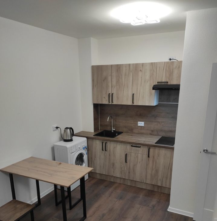 Сдается уютная квартира (евродвушка) в современном доме, построенном в 2024 году. Квартира находится на 11 этаже 16-этажного здания. Общая площадь квартиры — 30,5 кв. м, из них кухня занимает 15 кв. м, что позволяет с комфортом готовить и принимать гостей. Высота потолков — 2,7 метра. Окна выходят во двор, поэтому в квартире тихо и спокойно.