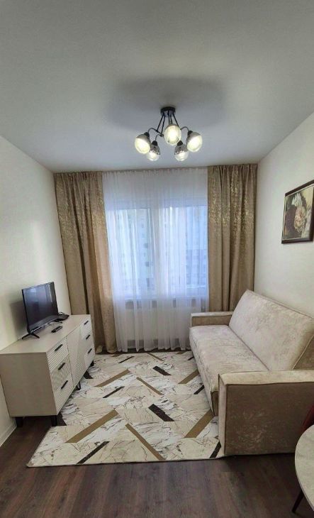 Квартира выполнена с качественным евроремонтом и полностью готова к проживанию. В кухне и комнате установлена современная мебель, а также имеется вся необходимая техника: холодильник, стиральная машина и телевизор. В санузле установлена душевая кабина, что добавляет удобства. Планировка квартиры продумана до мелочей для вашего комфорта.