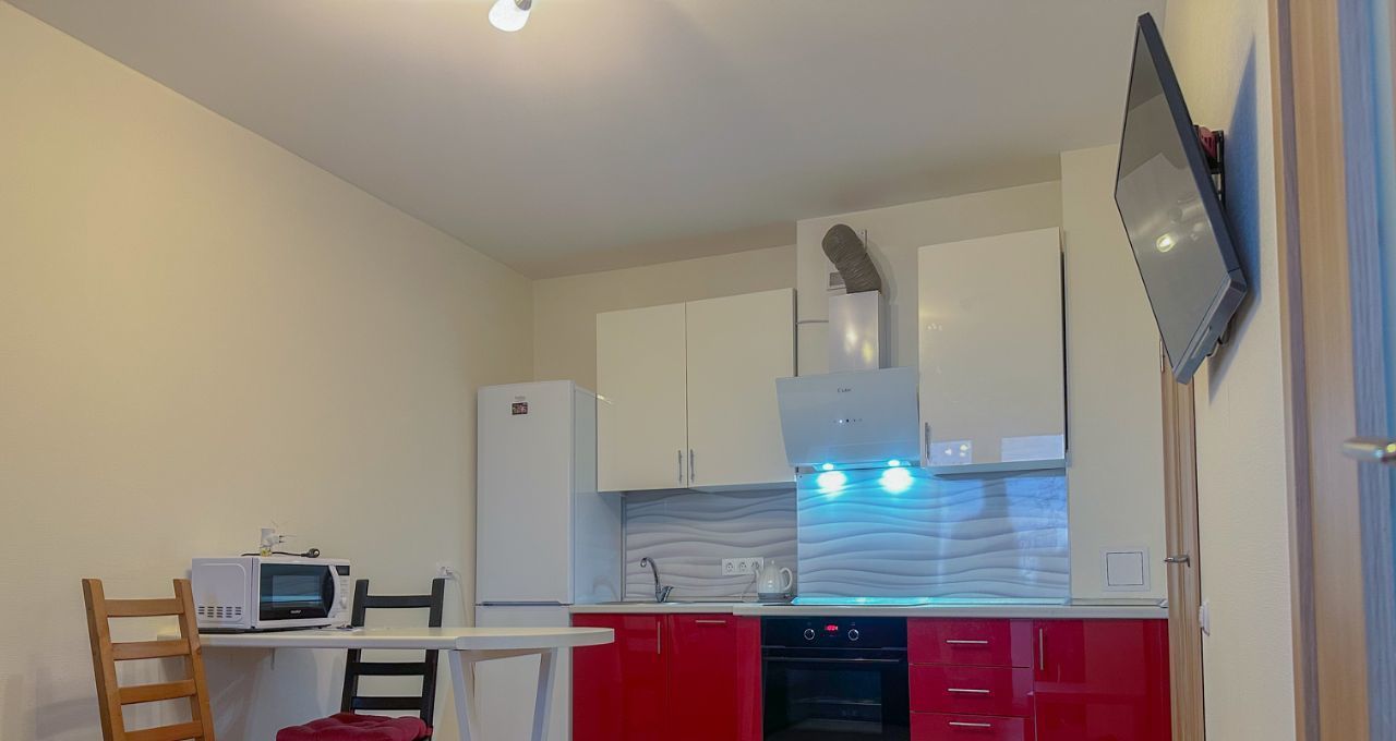 Кухоннообеденная зона — ваше личное кулинарное пространство. Здесь установлена вся необходимая техника: варочная панель, духовой шкаф, вытяжка, микроволновая печь, чайник,вместительный холодильник. Готовьте любимые блюда, устраивайте уютные ужины при свечах или собирайте друзей на гастрономические вечера.