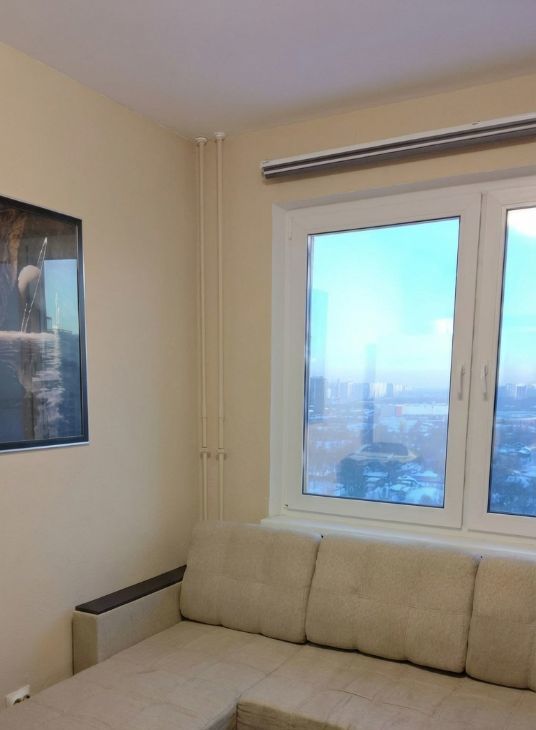 Жилая комната 14.7 м² светлая и тёплая в любое время года, застекленная лоджия со светоотражающей плёнкой от излишнего света.