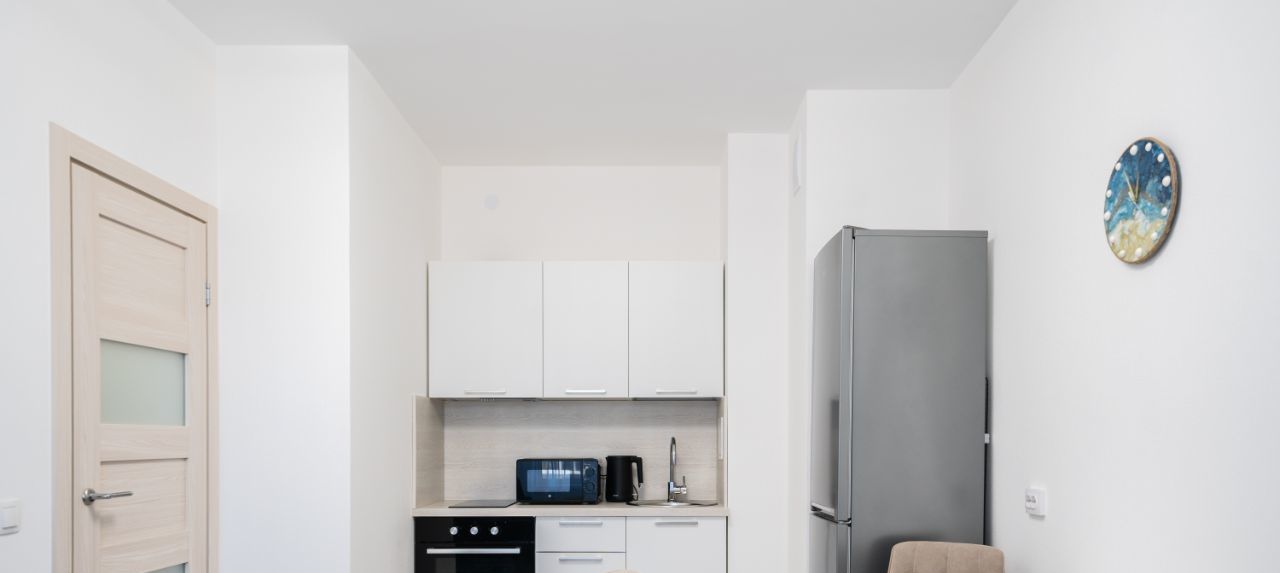 4. Кухня со всем необходимым (холодильник, варочная панель, духовой шкаф, микроволновая печь, чайник, а так же посуда, приборы).