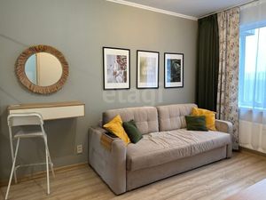 В квартире сделан современный евроремонт. В комнате и на кухне есть необходимая мебель, что позволит вам сразу заселиться и жить с комфортом. В ванной комнате установлена ванна, а окна выходят во двор, поэтому в квартире будет тихо и уютно. Из техники в вашем распоряжении холодильник, посудомоечная машина, телевизор и стиральная машина — все для вашего удобства и комфорта.