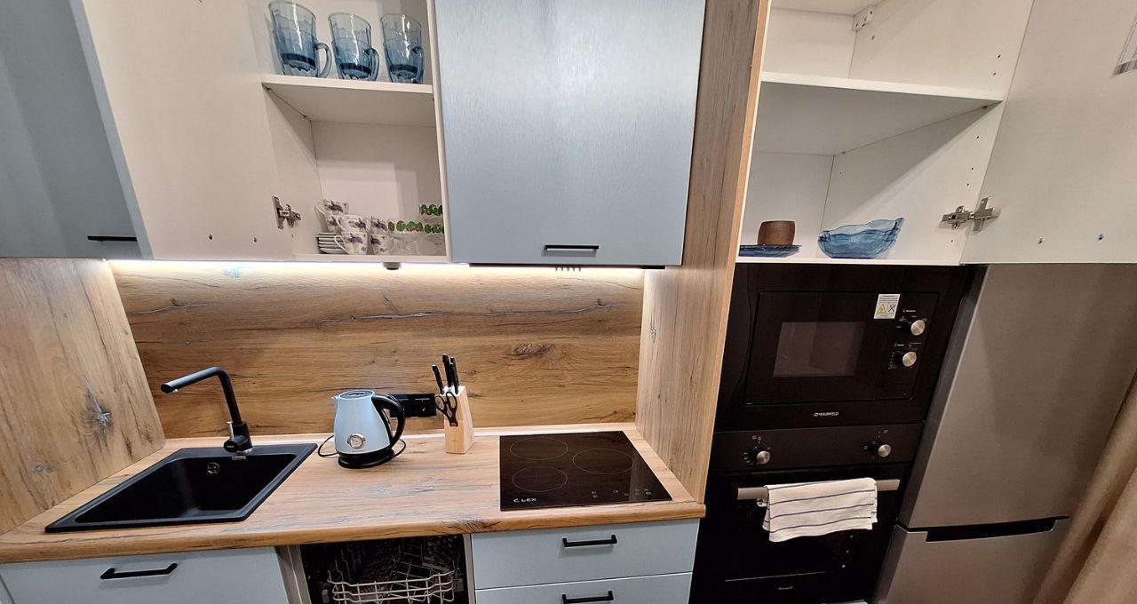 Полностью оборудована, вплоть до посуды- заезжай и живи.