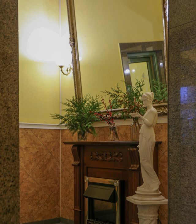 Стильное лобби с камином и элегантными люстрами создаёт атмосферу уюта и респектабельности уже с первых шагов.