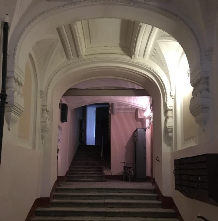 огромные окна выходят в зелёный двор, в квартире тишина. Соседи - интеллигентные петербуржцы.