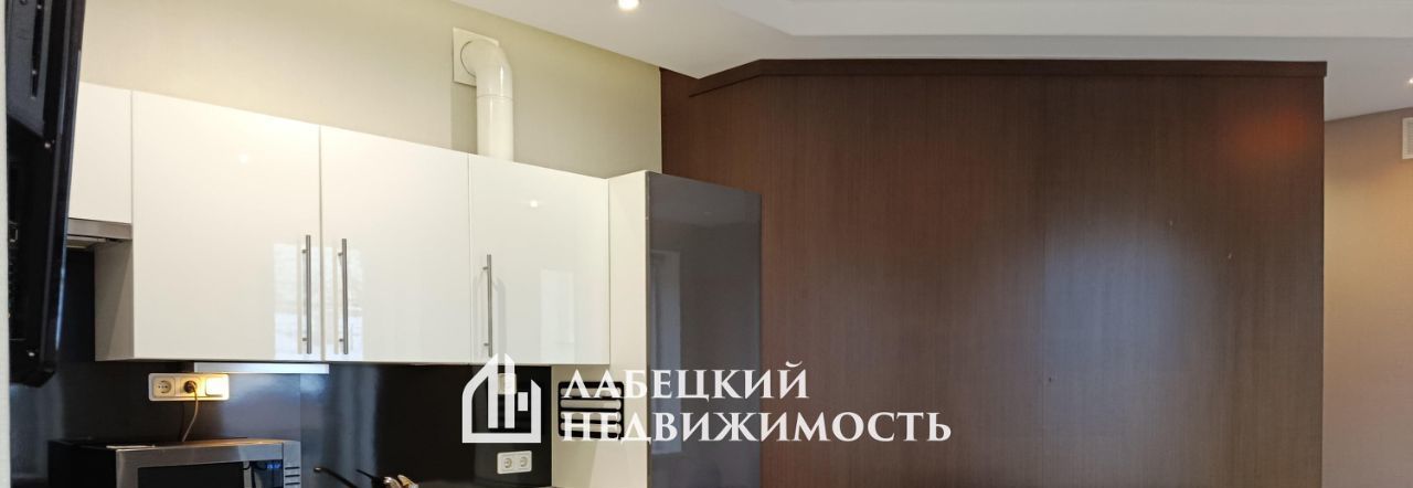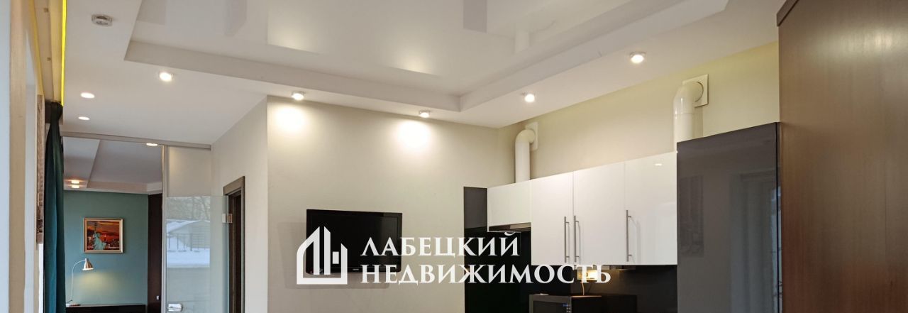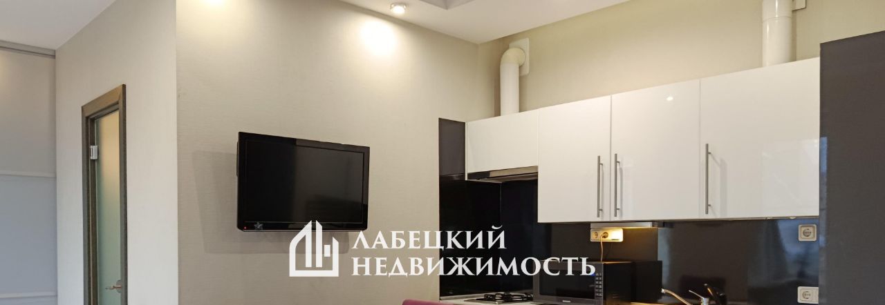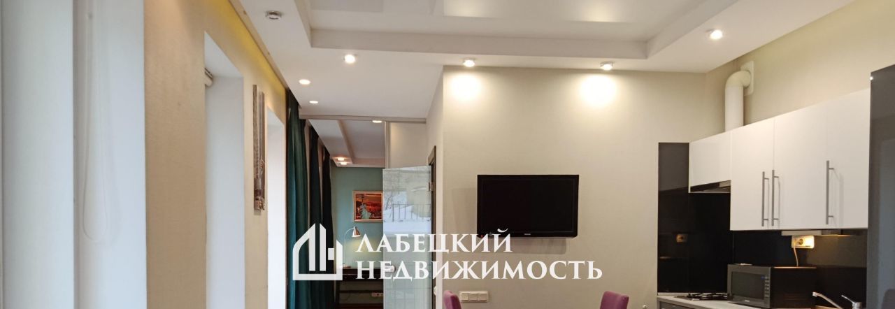 кухня-гостиная 21 кв.м с уютным диваном и ТВ;