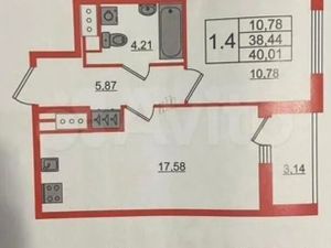 1-комнатная квартира: Санкт-Петербург, проспект Авиаконструкторов, 69 (40 м²)