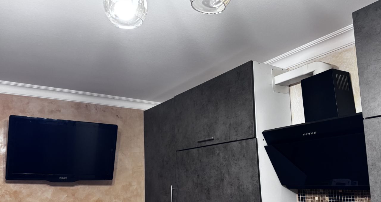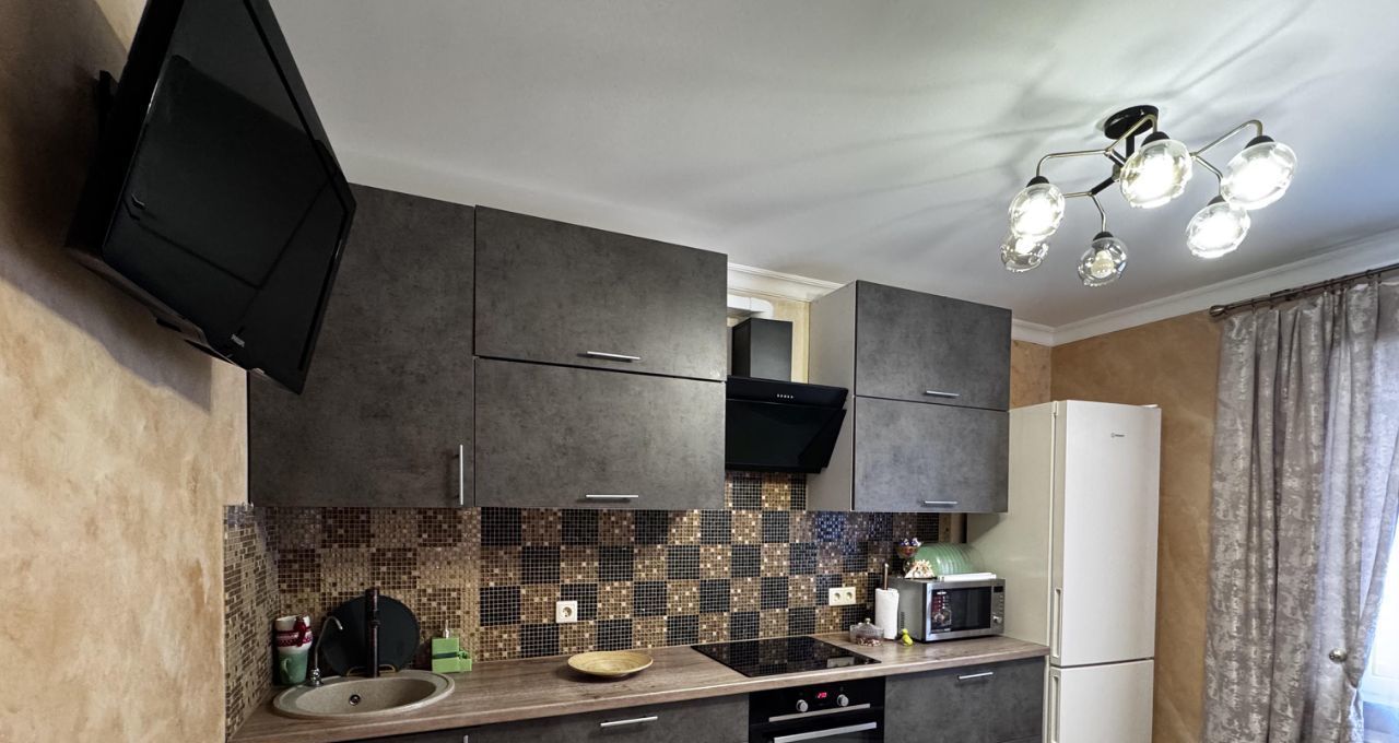 В квартире есть все, необходимое для жизни (посуда, бытовая техника -2 телевизора, плита, вытяжка, холодильник, микроволновка, стиральная машина, чайник, утюг).