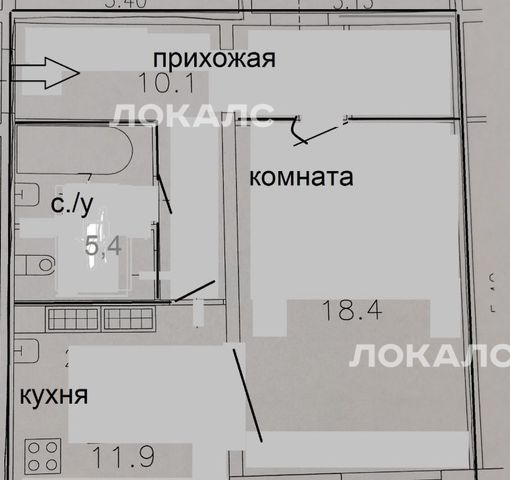 1-комнатная квартира: Санкт-Петербург, Верхне-Каменская улица, 9к1 (34 м²)