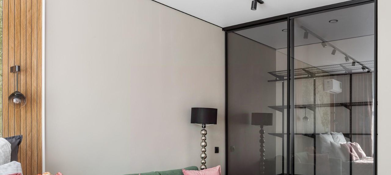 Комната разделена на 2 зоны (спальня с окном и кондиционером, гостиная с тв зоной и гардеробом). Все новое, на гарантии и достанется новому владельцу.