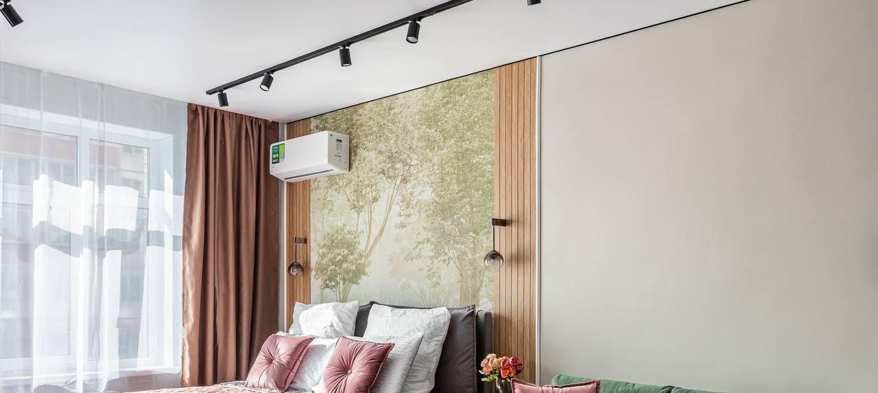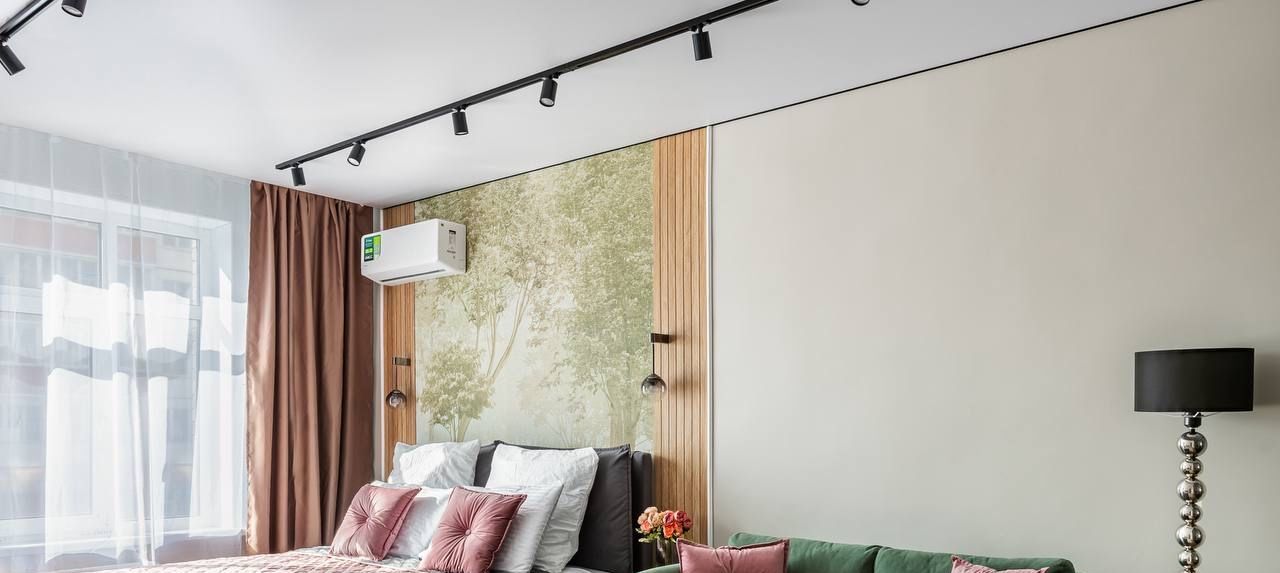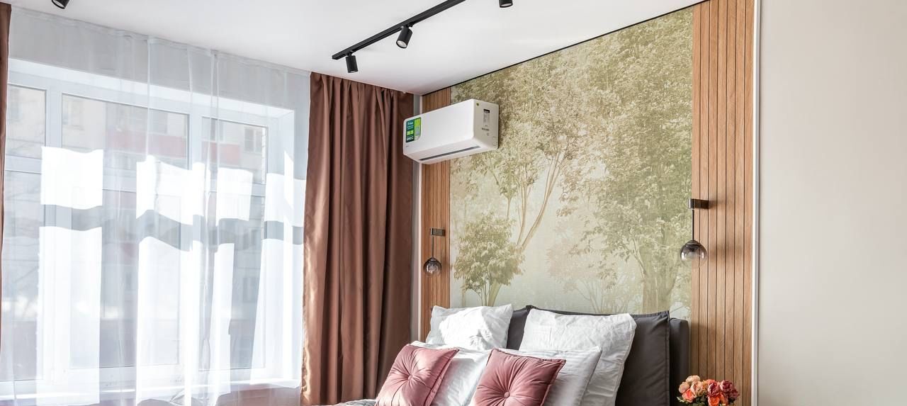 Комната разделена на 2 зоны (спальня с окном и кондиционером, гостиная с тв зоной и гардеробом). Все новое, на гарантии и достанется новому владельцу.
