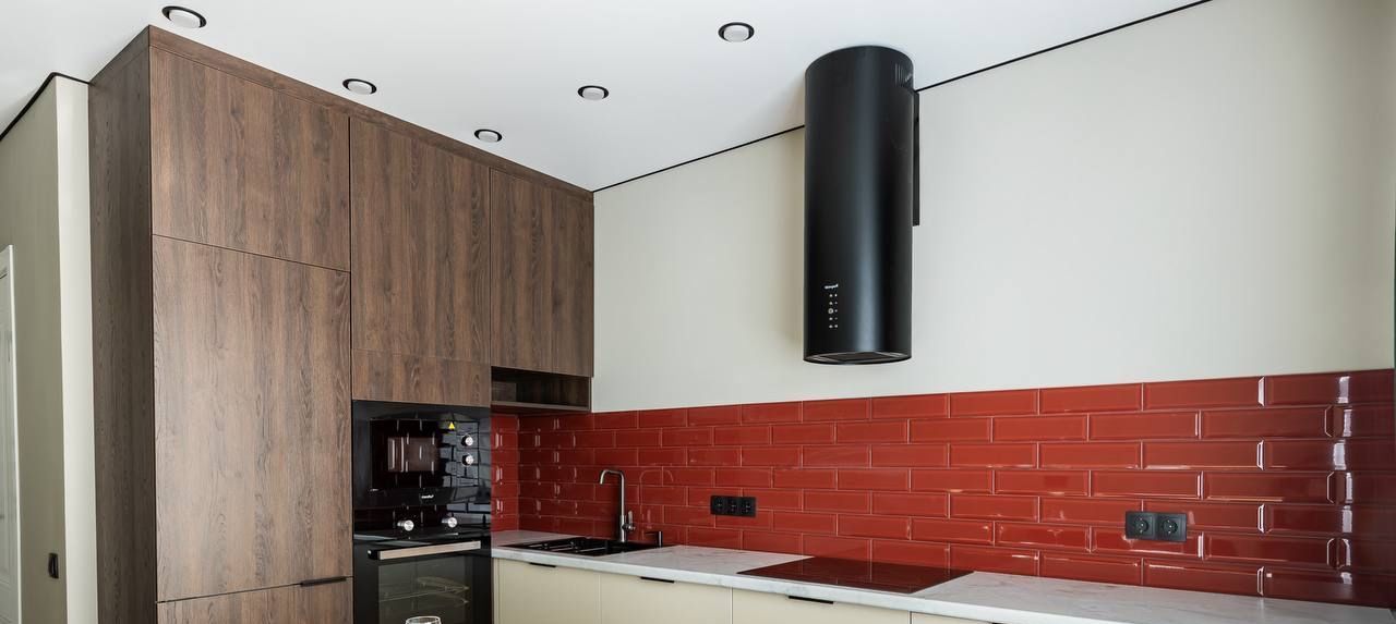 Кухня правильной квадратной формы со всей встроенной техникой под заказ (холодильник, посудомоечная машина, духовой шкаф и тд).