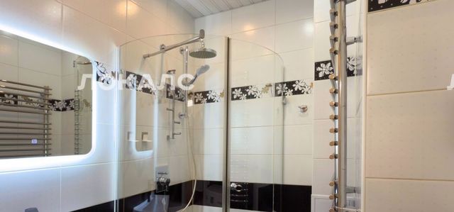 Далее о планировке и наполнении, при входе вы попадаете в прихожую, где установлен встроенный шкаф купе с множеством секций, рядом находится зеркало с обувницей, есть козетка, во второй части коридора слева находится ванная комната с новой душевой кабиной, стиральной машиной, раковиной и зеркалом с подсветкой, есть фильтры для воды, и туалет, где есть небольшая раковина с зеркалом.