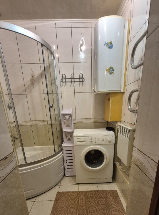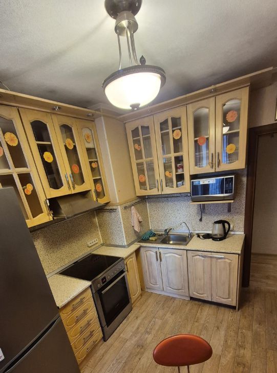 В квартире имеется все необходимое для проживания одного, двух человек (оборудованная кухня, холодильник, микроволновка, чайник, посудомоечная машина), в ванной - стиральная машина, в комнате - откидная кровать, раскладываемая софа (также утюг, гладильная доска).