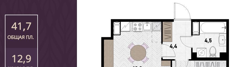 1-к кв. Санкт-Петербург Гражданский просп., 32 (41.7 м²)