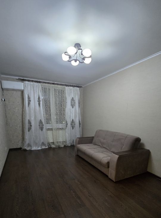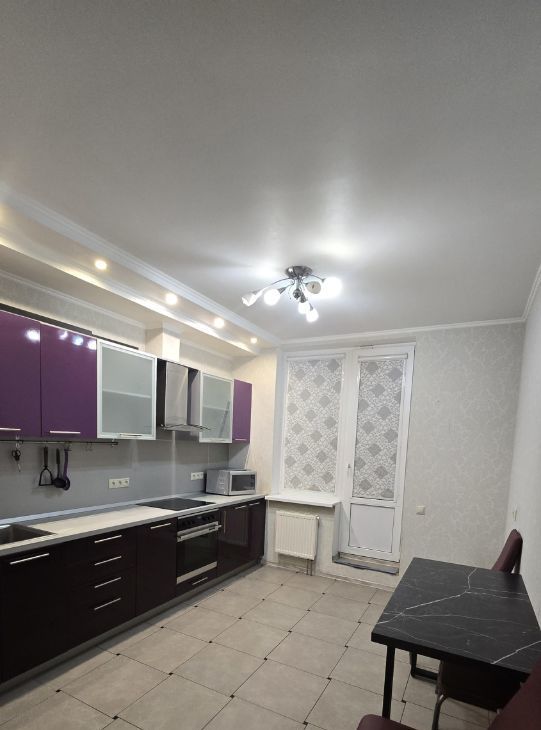Сдаётся уютная однокомнатная квартира с современным евроремонтом на восьмом этаже монолитного дома 2012 года постройки. Общая площадь составляет 43 кв. м, жилая — 17 кв. м, кухня — 12 кв. м. Высокие потолки (2.75 м) и окна, выходящие во двор, создают приятное ощущение простора и уюта.