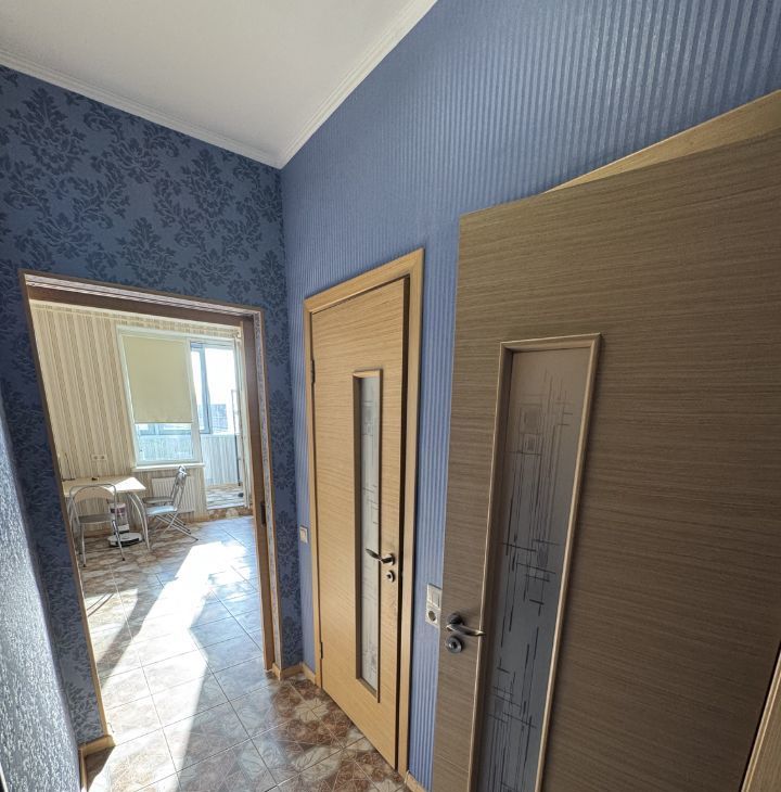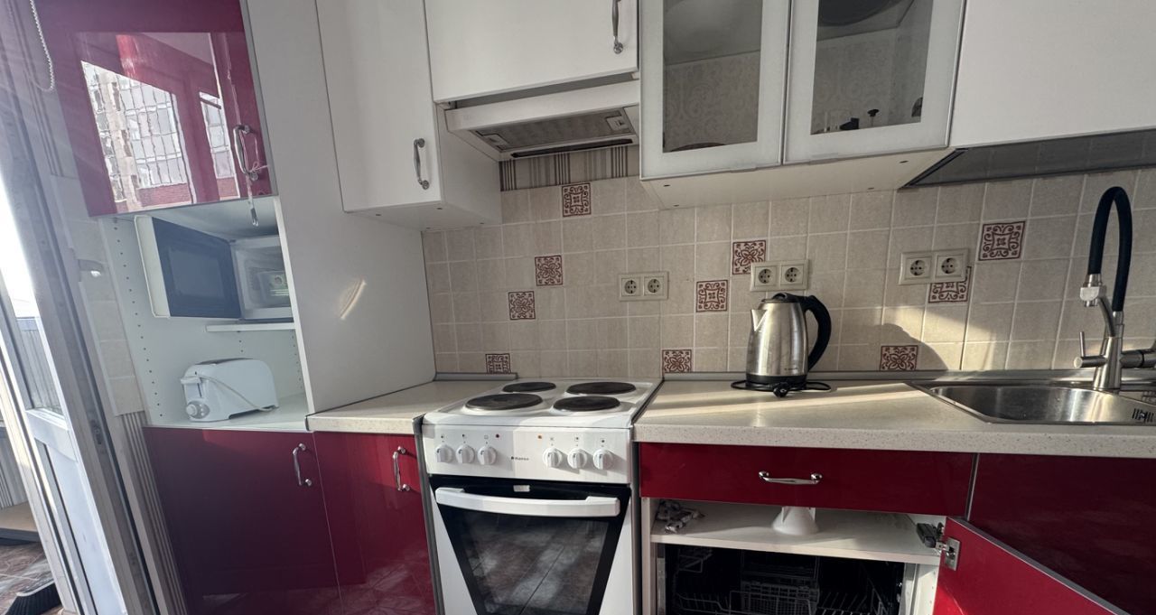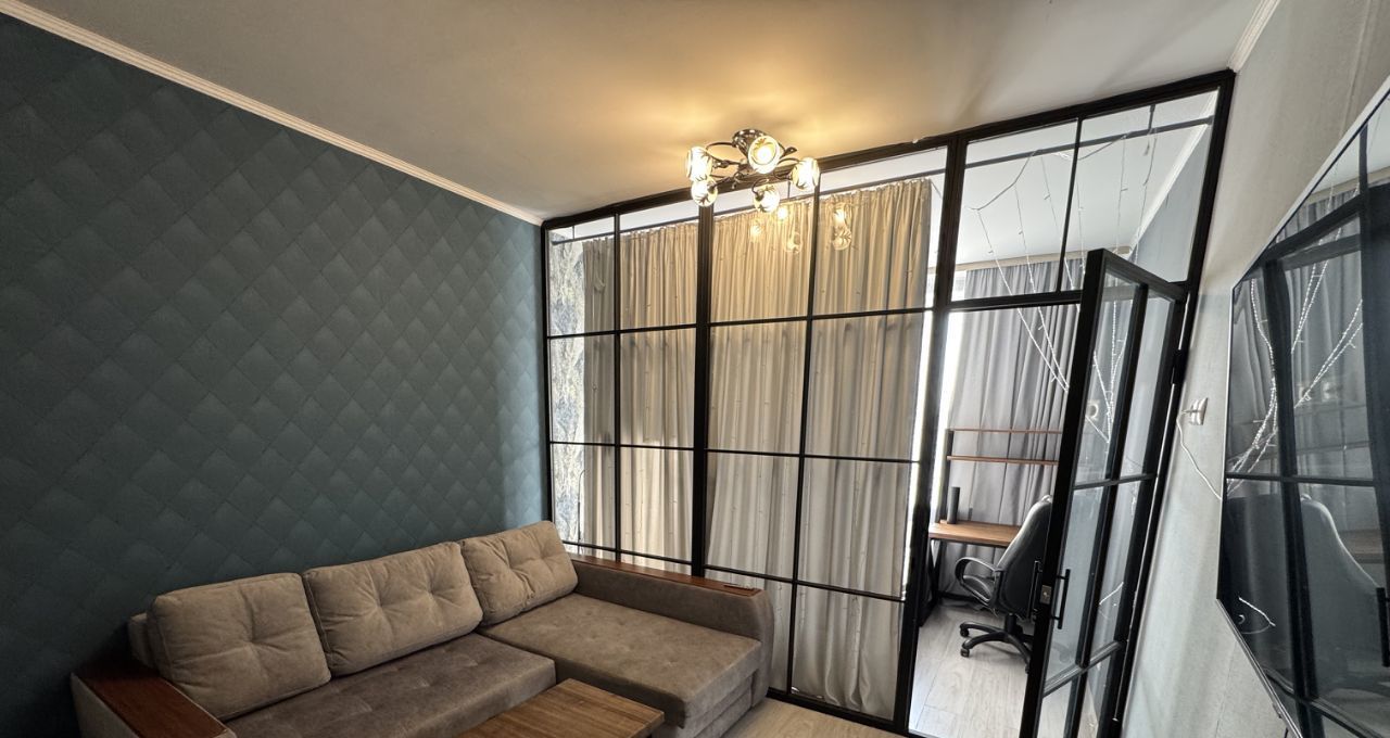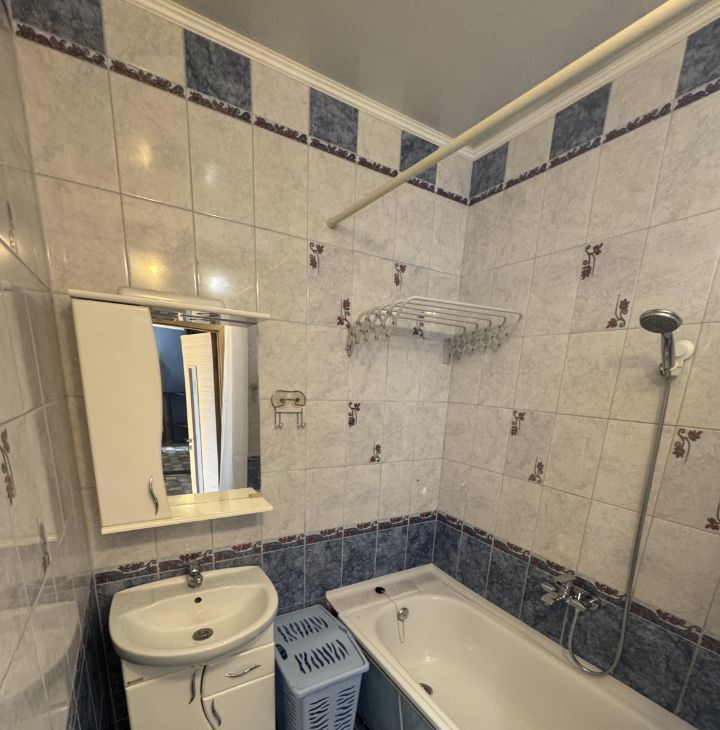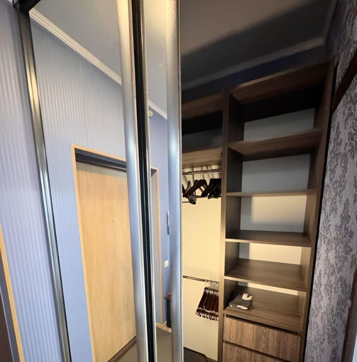 Общая площадь 43 кв м+большой балкон! В коридоре отдельная гардеробная комната. Кухня полностью оборудована всем необходимым, квартира готова к проживанию.