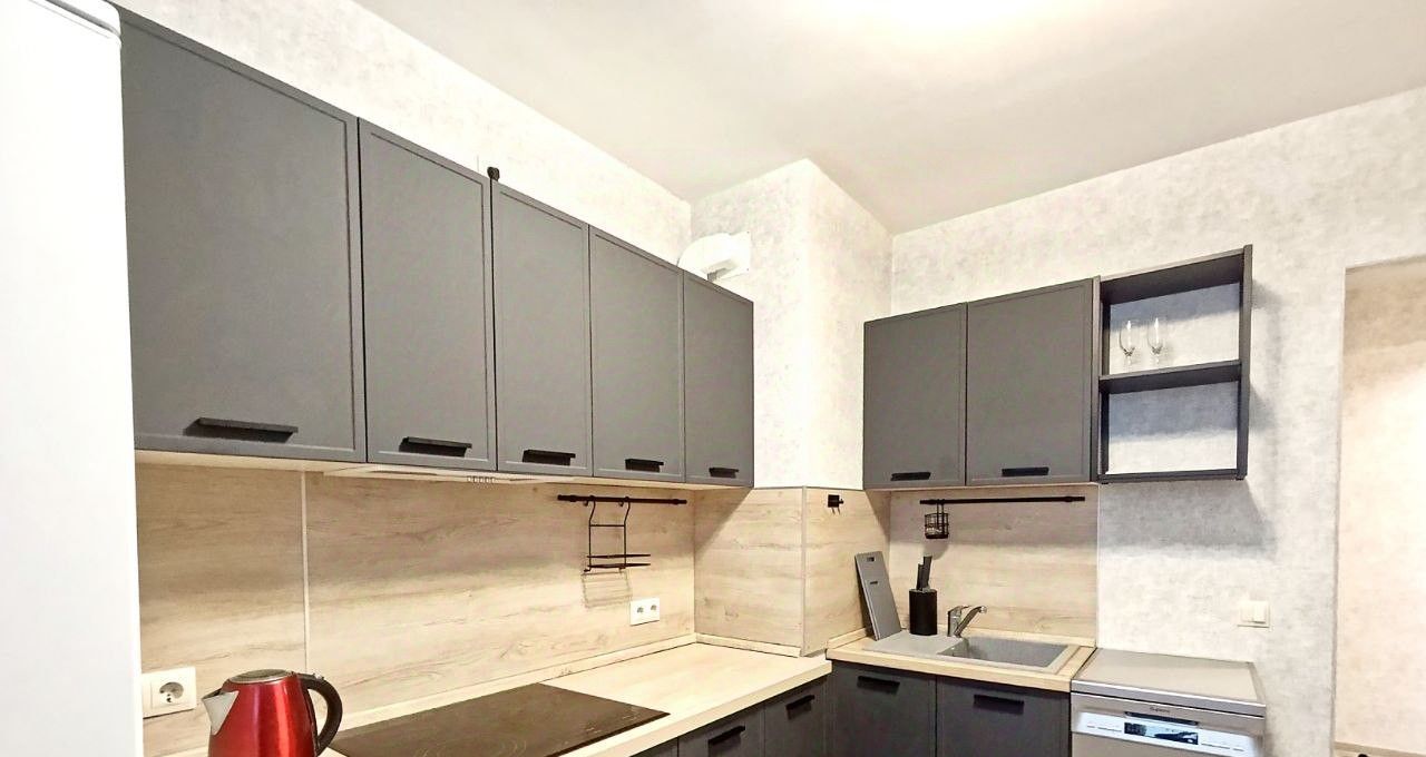 Кухня полностью оборудована современной мебелью и техникой, выход на застекленную лоджию.