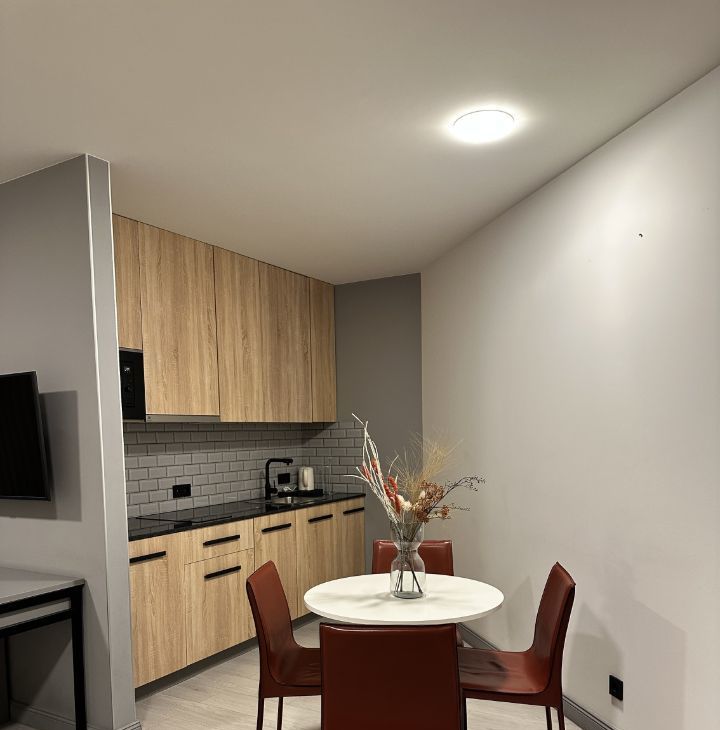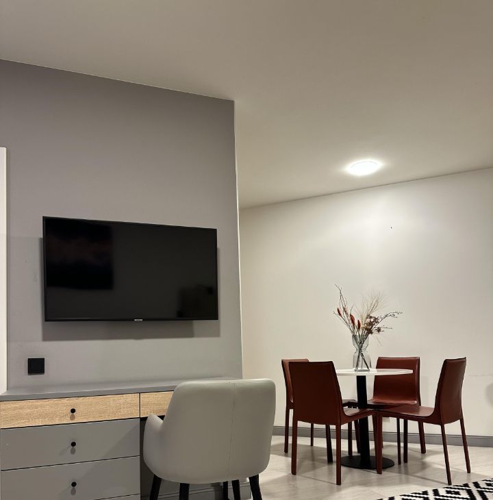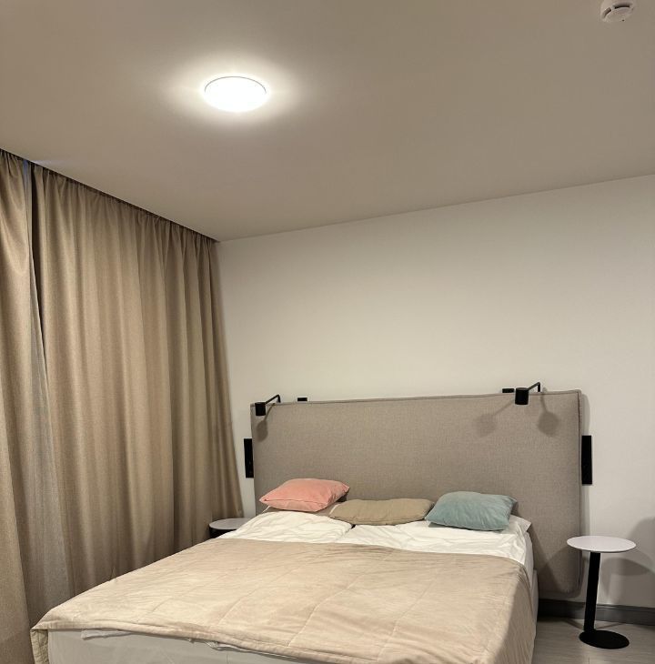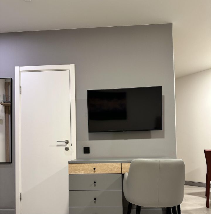 Сдаётся стильная однокомнатная студия с дизайнерским ремонтом в современном монолитном доме, со своим фуд-кортом и консьержем.