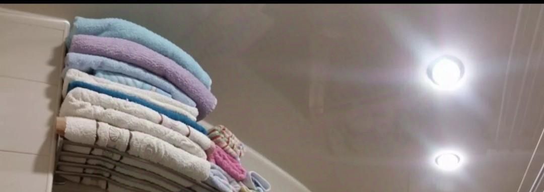 В квартире натяжные потолки, в коридоре реячный.
